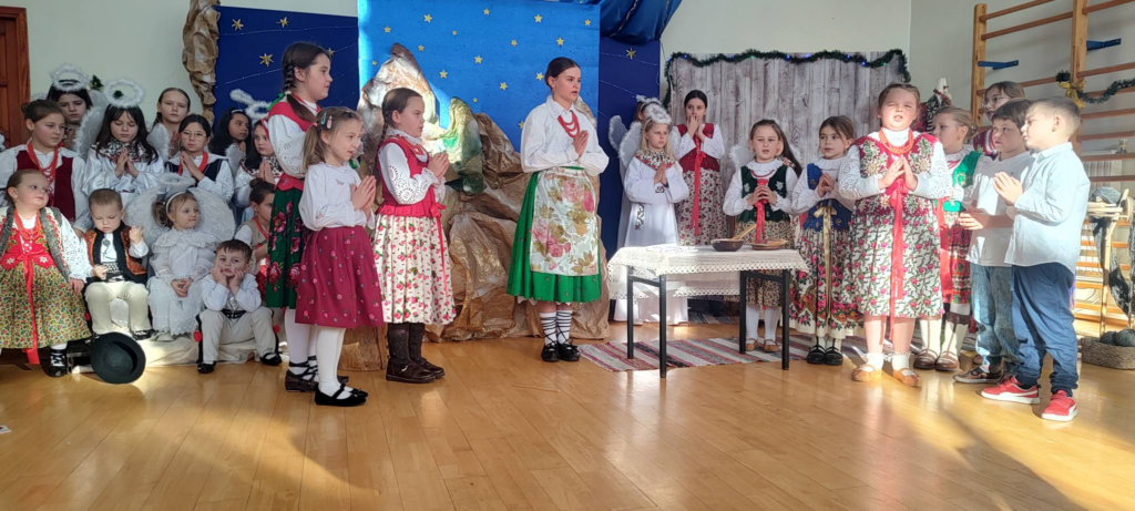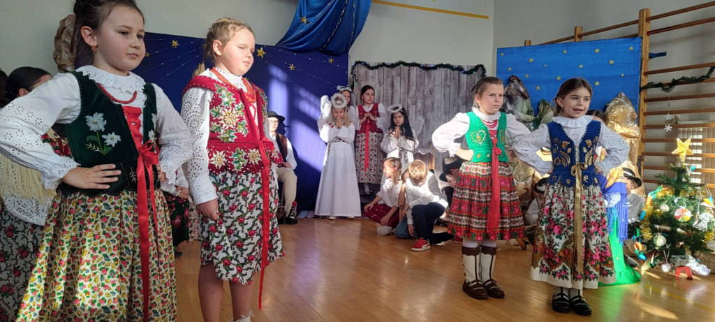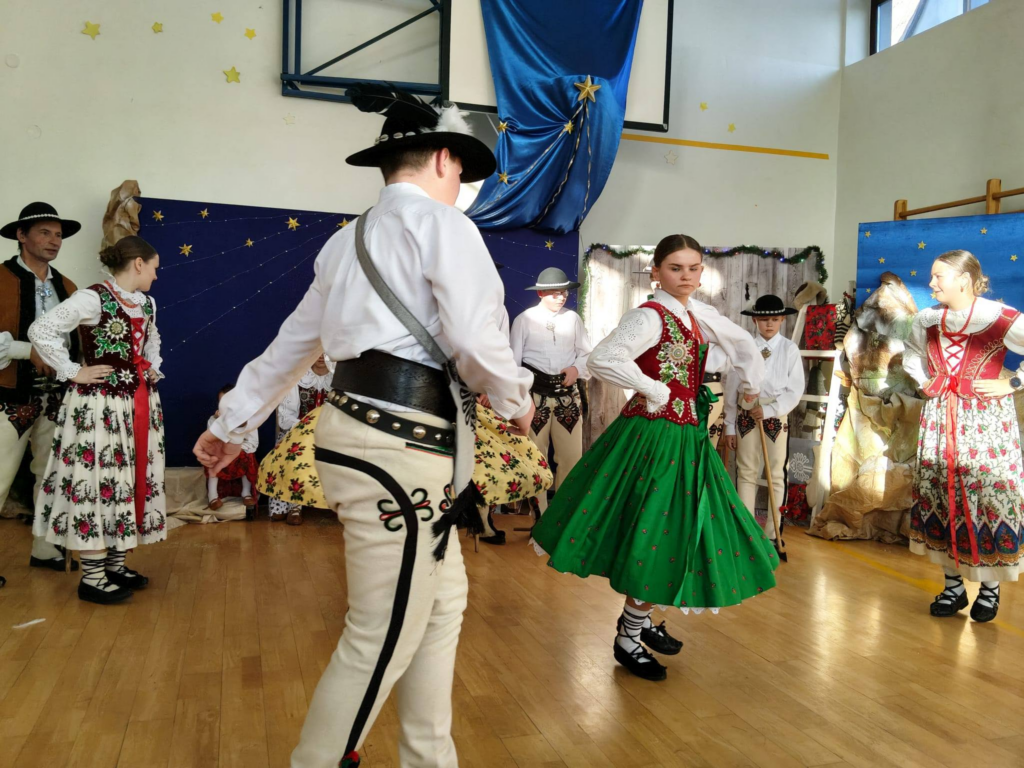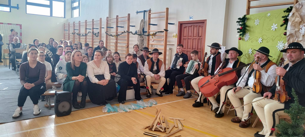 pełen kolęd, tradycji. Widownia mogła również zobaczyć naszych uczniów i absolwentów należących do zespołu góralskiego Harnasie. Dziękujemy instruktorom za przygotowanie pięknego występu, wszystkim członkom zespołu za obecność, poświęcony czas, a muzykantom za granie.